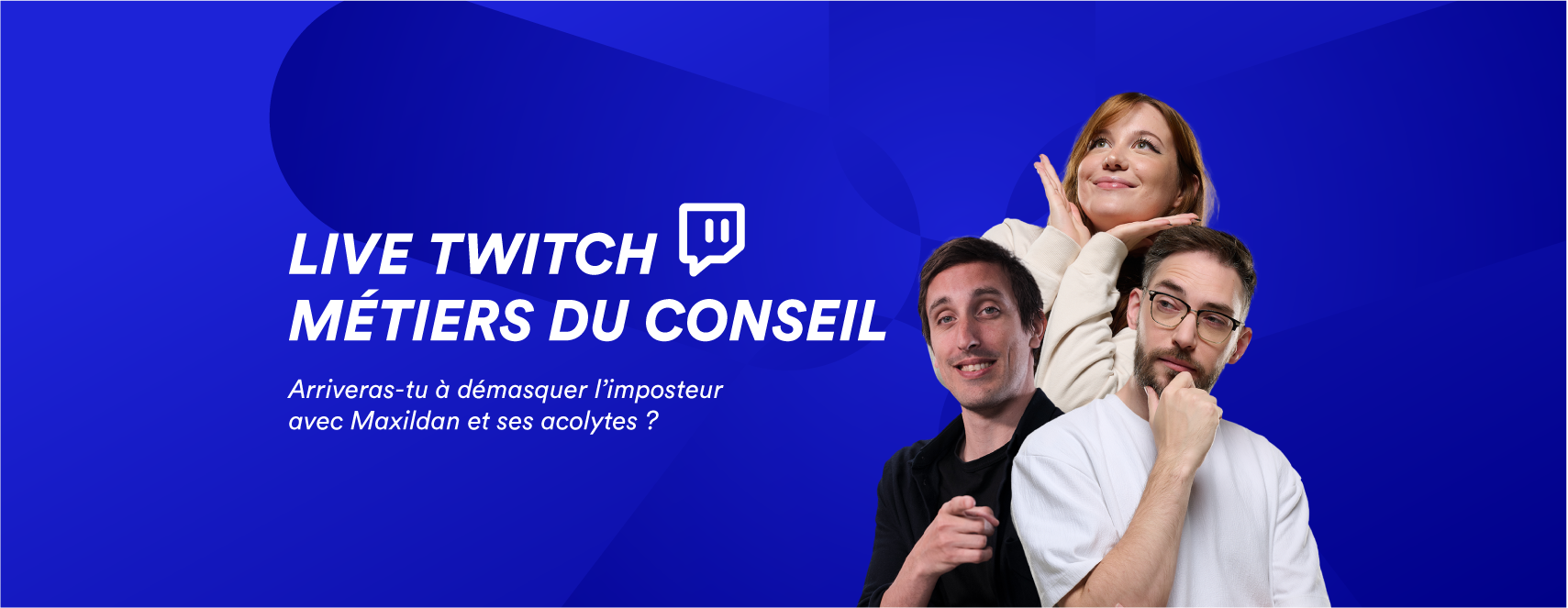 Le principe est simple ! 7 professionnels du conseil et 1 imposteur face à 3 streamers - Maxildan, Norman Genius, Aaley. Ensemble, ils mènent l’enquête. À travers des jeux et des indices, ils explorent les multiples facettes d’un secteur où stratégie, accompagnement et créativité s’entremêlent.